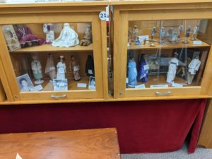 Tour Stop 21 Missionaries Memorabilia Top Left Shelf – American Navajo and India Mission field dolls. Top Right Shelf – Missionaries Viola and Howard Covers’ miniature India Occupations figurines. c.1900 Bottom Shelves – Modern Bangladesh occupational dolls – Missionary Mary White Collection.